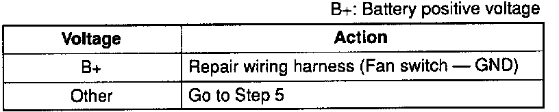 3. Measure the voltage at the terminal wires of the fan switch connector.