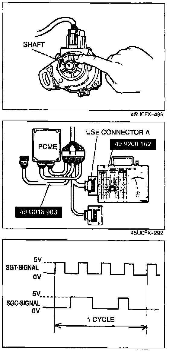 5. Rotate distributor drive by hand and measure output voltage. At terminal 2E, output should be approximately 5V with 4 pulses per revolution. At terminal 2G, output should be approximately 5V with 2 pulses per revolution.