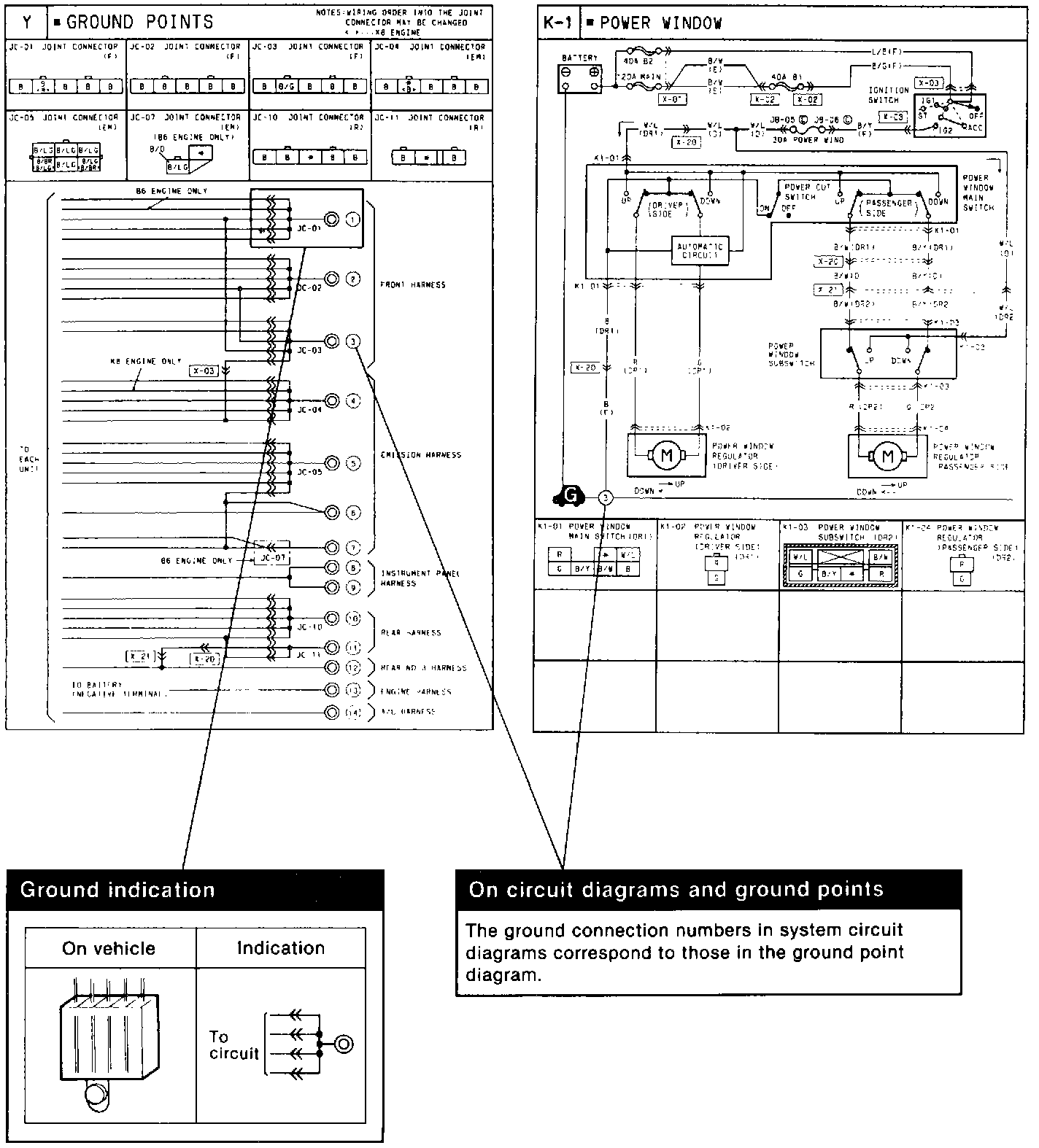 This shows ground points of the harness.