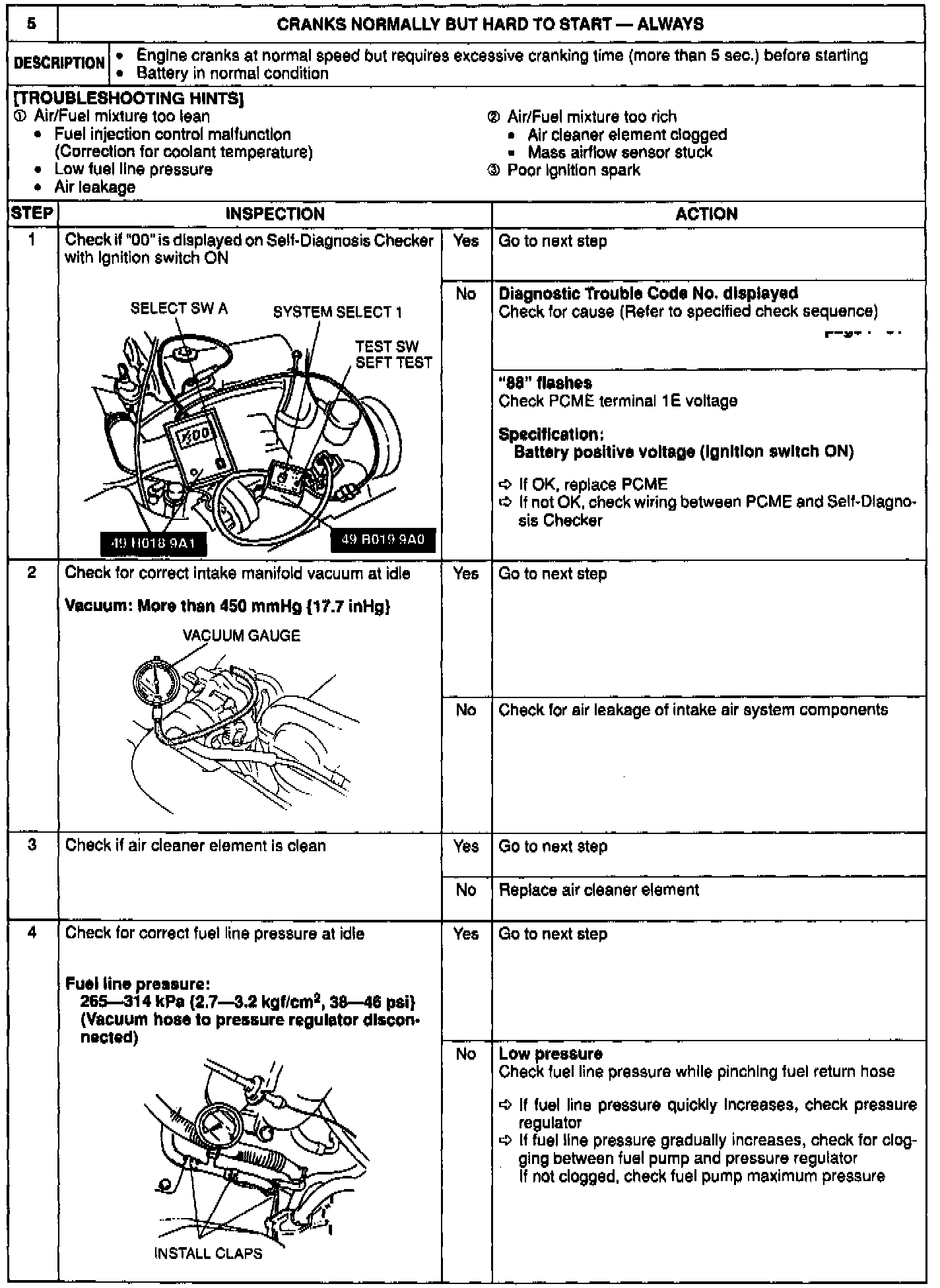 Crank Normally/Hard to Start/Always