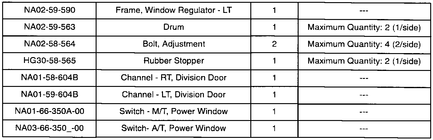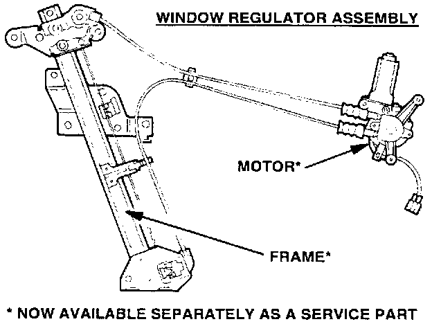 This service information has been designed to facilitate power window repairs and reduce the amount of unnecessary power window regulator assembly replacements. The motor and frame components of the power window assembly are now available separately as established service parts and should be replaced according to the attached repair procedure.