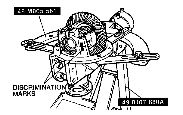 3. Mount the differential gear assembly on SST #49 M005 561 and #49 0107 680A as shown.