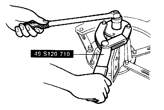 14. Hold the companion flange with SST #49 S210 710 or equivalent spanner wrench and remove the locknut.