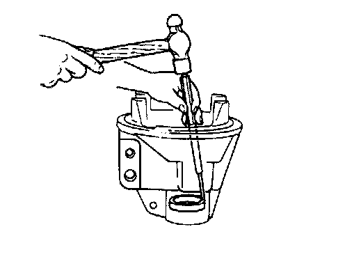 20. Using the two grooves in the carrier, alternately tap out the bearing outer races as shown.