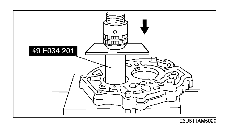 1. Support the countershaft center bearing, and press it out from the bearing housing using the SST.