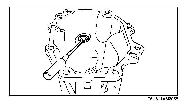 Using a flathead screwdriver, remove the oil seal as shown in the figure.