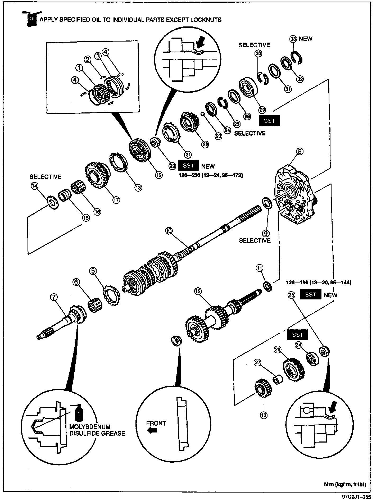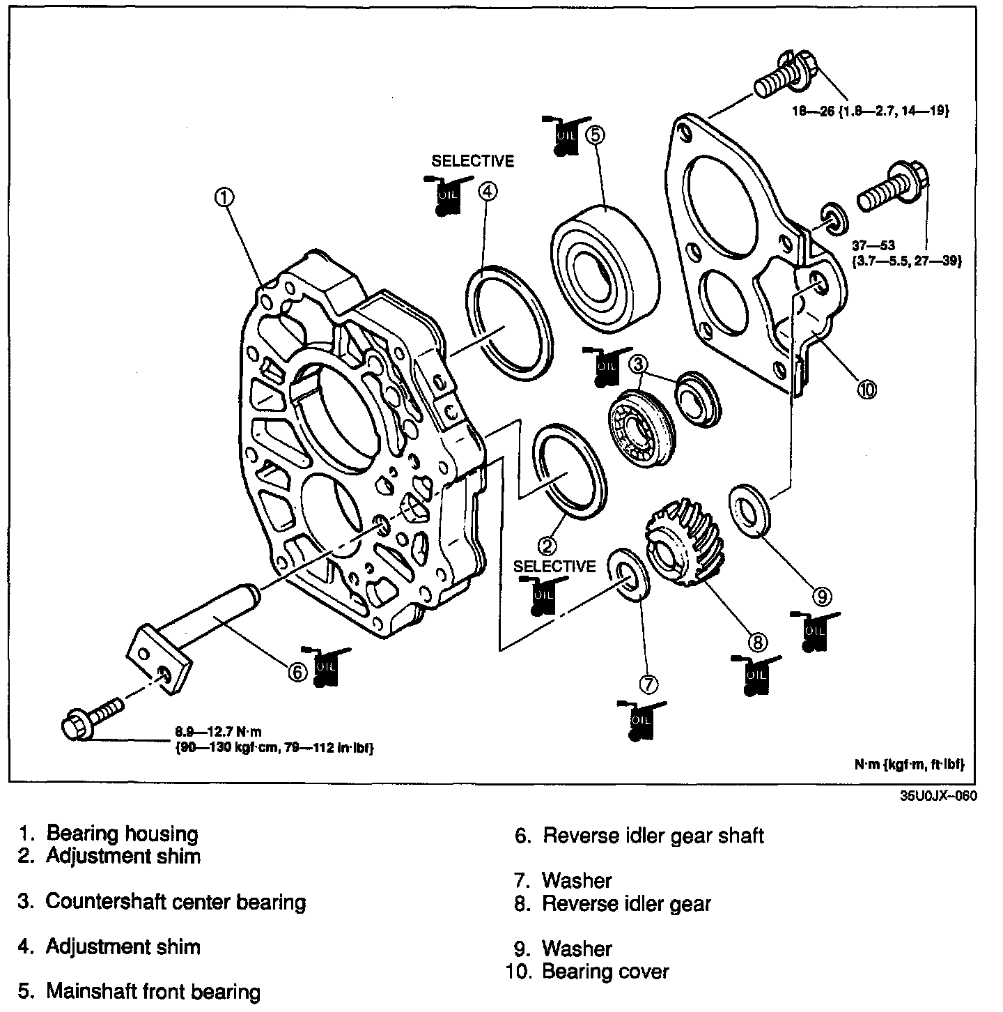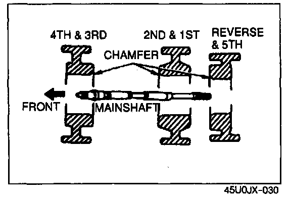 If they are not, select the proper washer to install between 1st gear and the mainshaft front bearing, and between reverse gear and the mainshaft front bearing.