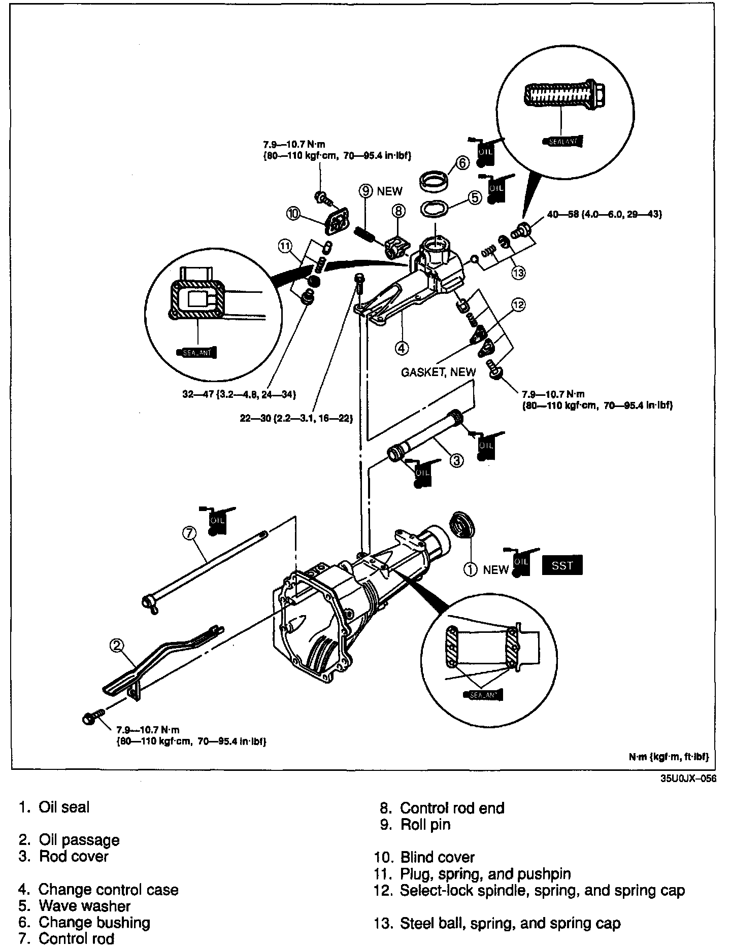 1. Apply transmission oil to the rubber bushings on the rod cover.