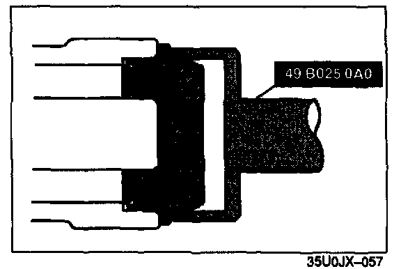 After measuring dimensions (A) and (B) shown in the image, use an adjustment shim(s), as specified below, of the thickness corresponding to the value of (A) minus (B), so that bearing end play will be within specification.