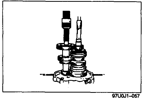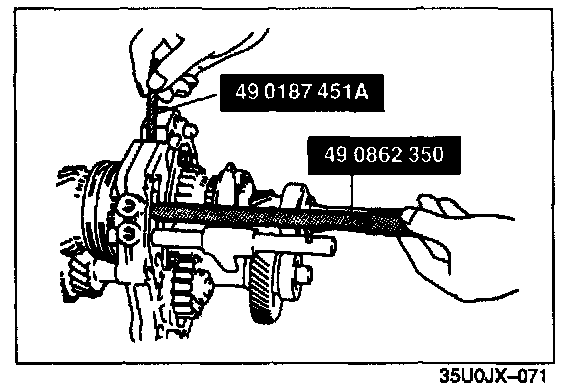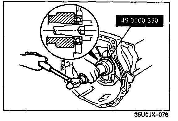 1. Install the mainshaft rear bearing by using the SST, and fully seat it against the front C-washers.