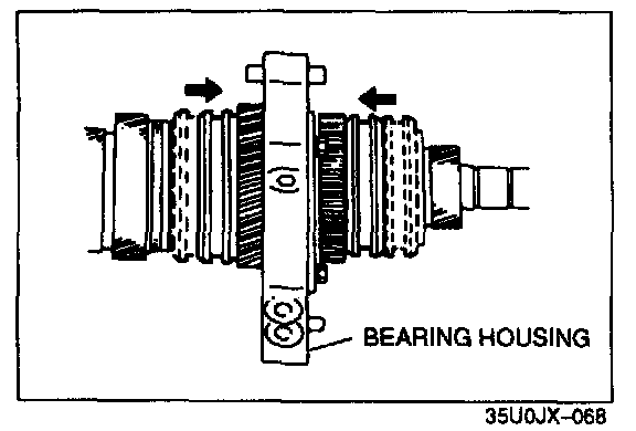1. Apply sealant to the contact surfaces of the bearing housing and transmission case.