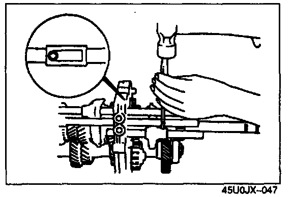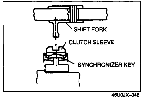 3. Verify that the centers of the shift fork and clutch hub sleeve are aligned properly