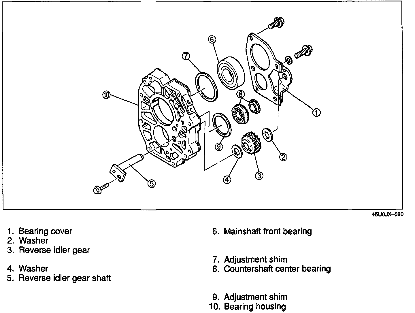 2. Support the reverse idler gear shaft, and press it from the bearing housing.