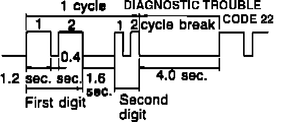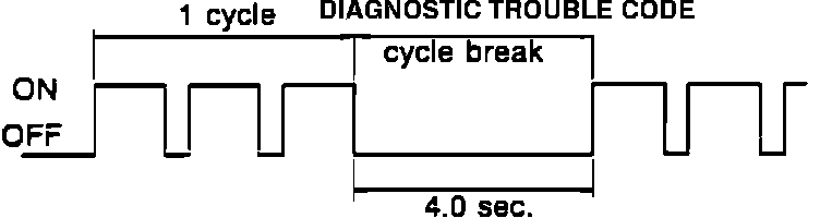 Digit in tens position of diagnostic trouble code represents the number of times checker buzzer sounds 1.2 seconds during one cycle. Buzzer remains "OFF" for 1.6 seconds between long and short pulses.