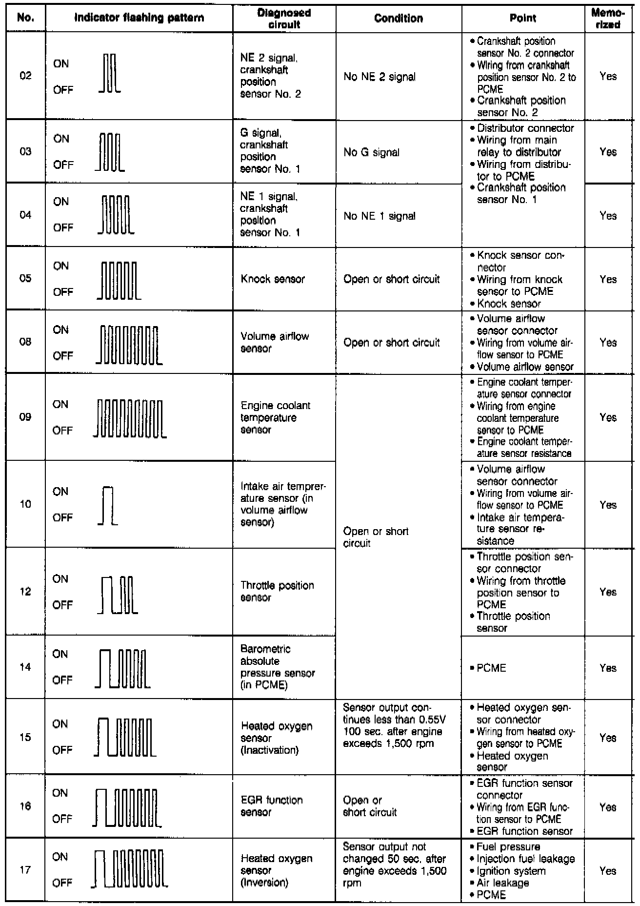 ^ The buzzer sounds only for the ones position when using the Mazda Digita Code Checker. To judge the correct trouble code number, refer to the digital display.