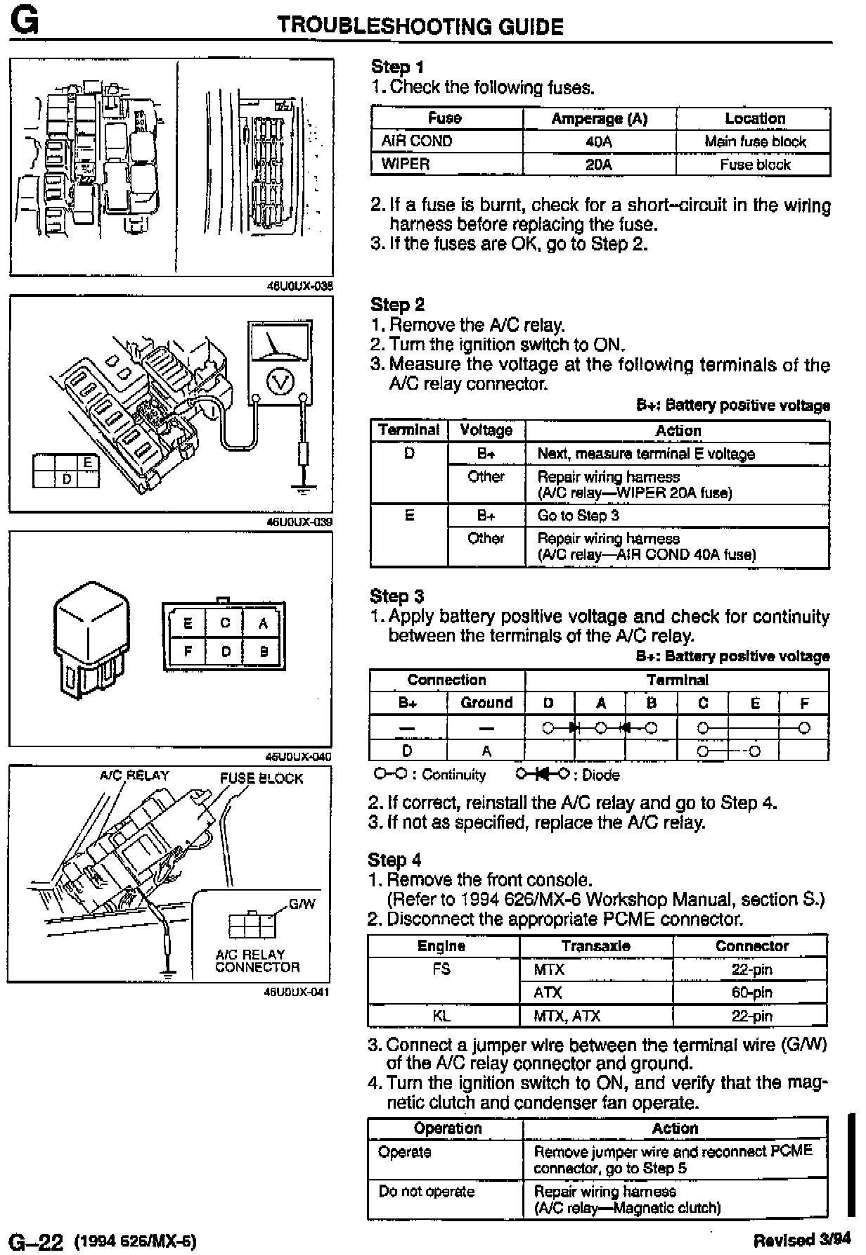 Included are replacement pages for 1994 626/MX-6 Body Electric Troubleshooting Manual which require correction for the following reasons: