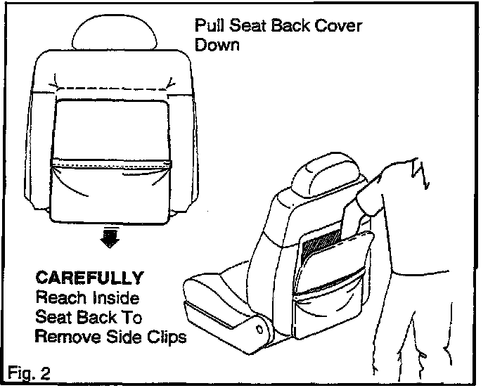 3. Carefully reach into the seat back to release the remaining four (4) side clips. Refer to Fig. 2
