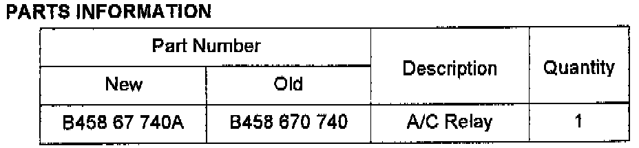 The A/C relay is redesigned to prevent this problem. If a customer complains of this concern inspect the vehicle according to this bulletin and repair if necessary.