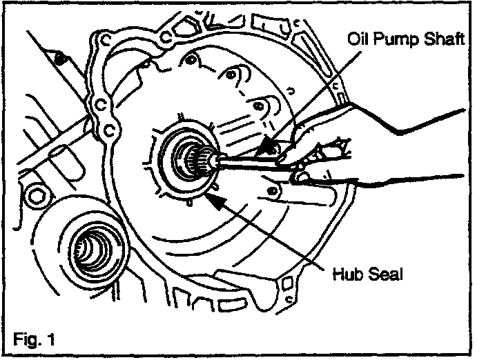 5. Remove the torque converter and oil pump shaft. Refer to Fig. 1.