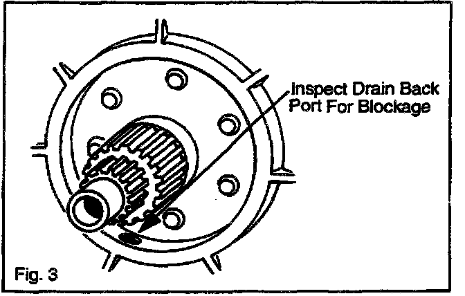 7. Inspect the drain back port for blockage. Refer to Fig. 3.
