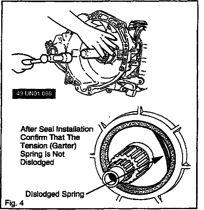 LA4A-EL TRANSAXLE FLUID LEAK AT TORQUE CONVERTER HUB SEAL