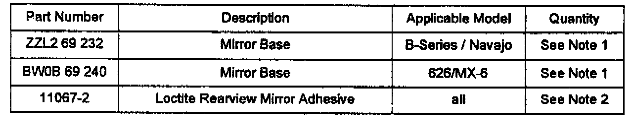 Reuse the original mirror base if it is available. If missing or damaged, a replacement base is available. Refer to the instructions below to remove the base from the mirror. For part ordering information refer to the PARTS INFORMATION section of this bulletin.