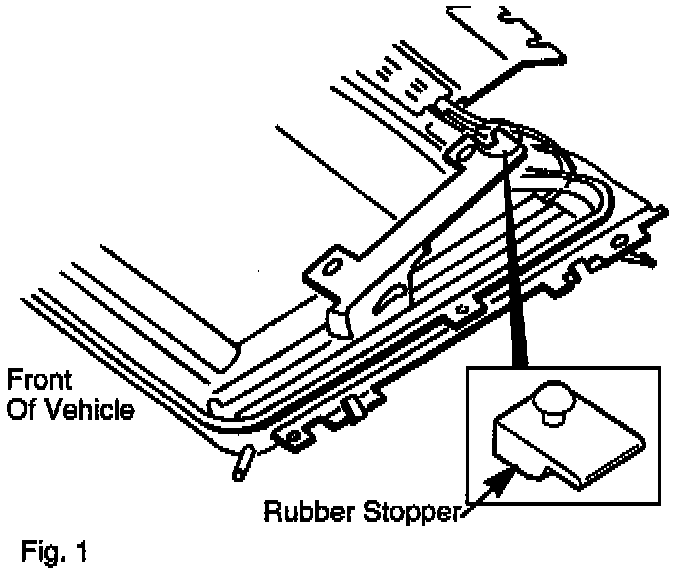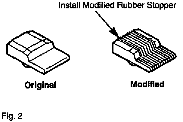 6. Install modified rubber stoppers onto the rear guide assemblies by sliding them rearward until they lock in place. Refer to Fig. 2