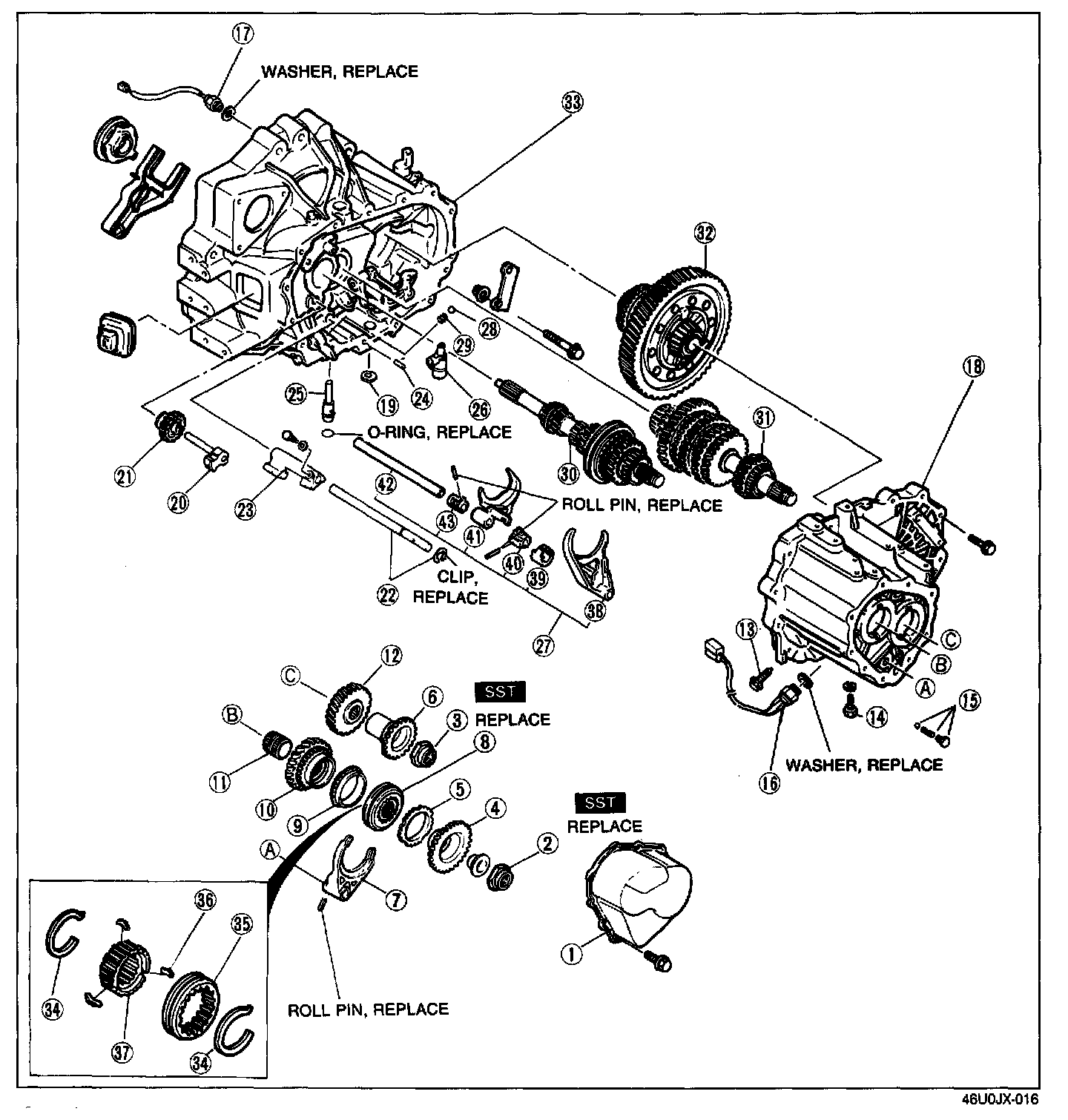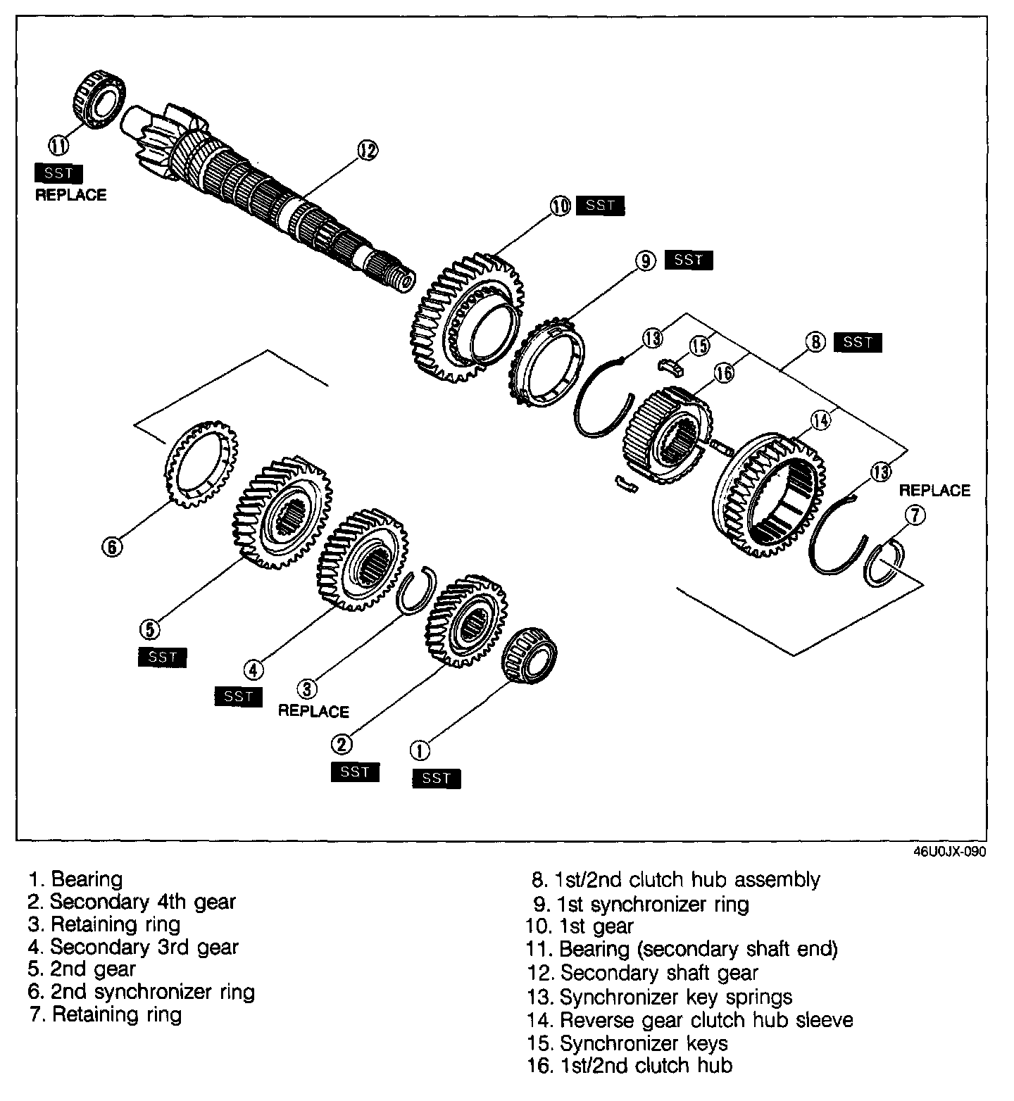 1st/2nd clutch hub assembly, 1st synchronizer ring, and 1st gear