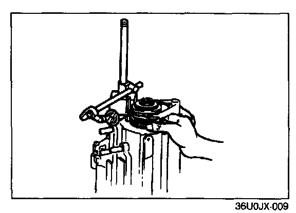 2. Remove the bearing and secondary 4th gear by using the SST.