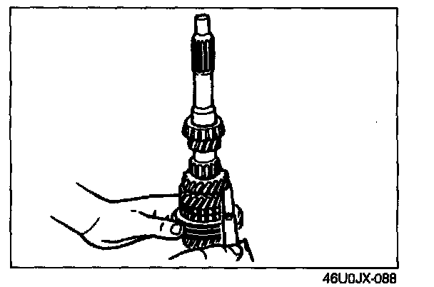 2. If the clearance exceeds the maximum, check the contact surfaces of the 4th gear, ball bearing, and 3rd/4th clutch hub. Replace worn and damaged pans.