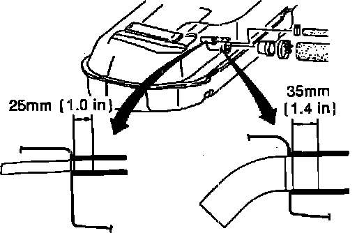 3. Push fuel filler hoses onto tank and filler pipes at least 1.4 in (35 mm).