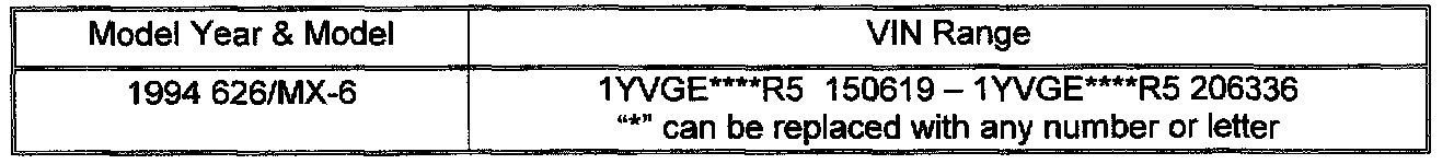 Mazda Motor Corporation has determined that a defect, which relates to motor vehicle safety, exists in certain 1994 626/MX-6 vehicles produced from January 1, 1994 to May 31, 1994. On some of these vehicles, a defective solder connection to the headlight switch may result in a loss of headlights without any prior warning.