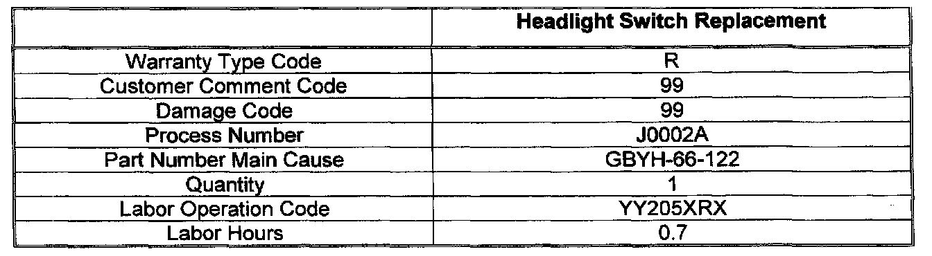 1994 626/MX-6Headlight Switch