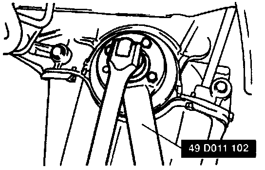 1. Hold the pulley boss with the SST.