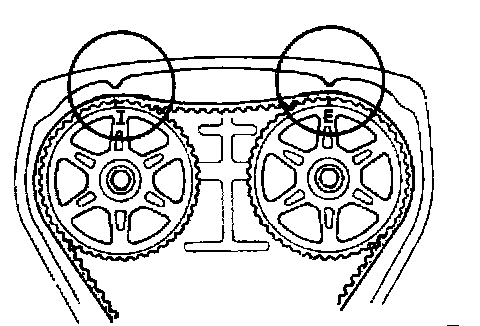 14. Measure the timing belt deflection by applying moderate pressure 98 N (10 kgf, 22 lbf) midway between the camshaft pulleys. If the deflection is not correct, repeat from step 10 above or, it necessary, replace the tensioner spring.