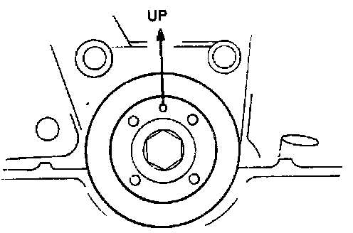 5. Turn the crankshaft two turns clockwise and face the pin on the pulley boss upright. Do not turn the crankshaft counterclockwise.