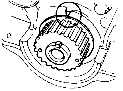 1. Verify that the timing belt pulley mark is aligned with the timing mark.