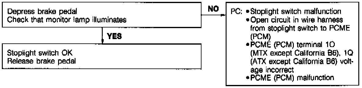 The TEN terminal of the data link connector must be grounded and the ignition switch turned ON (engine not running). If any switch remains activated, the monitor lamp will be illuminated.
