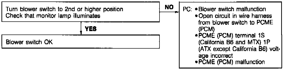 7. Check if monitor lamp illuminates when each switch is made to function as described on image chart: