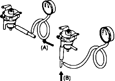 2. Connect pressure gauge to passage connected to fuel tank. Hold valve horizontally.