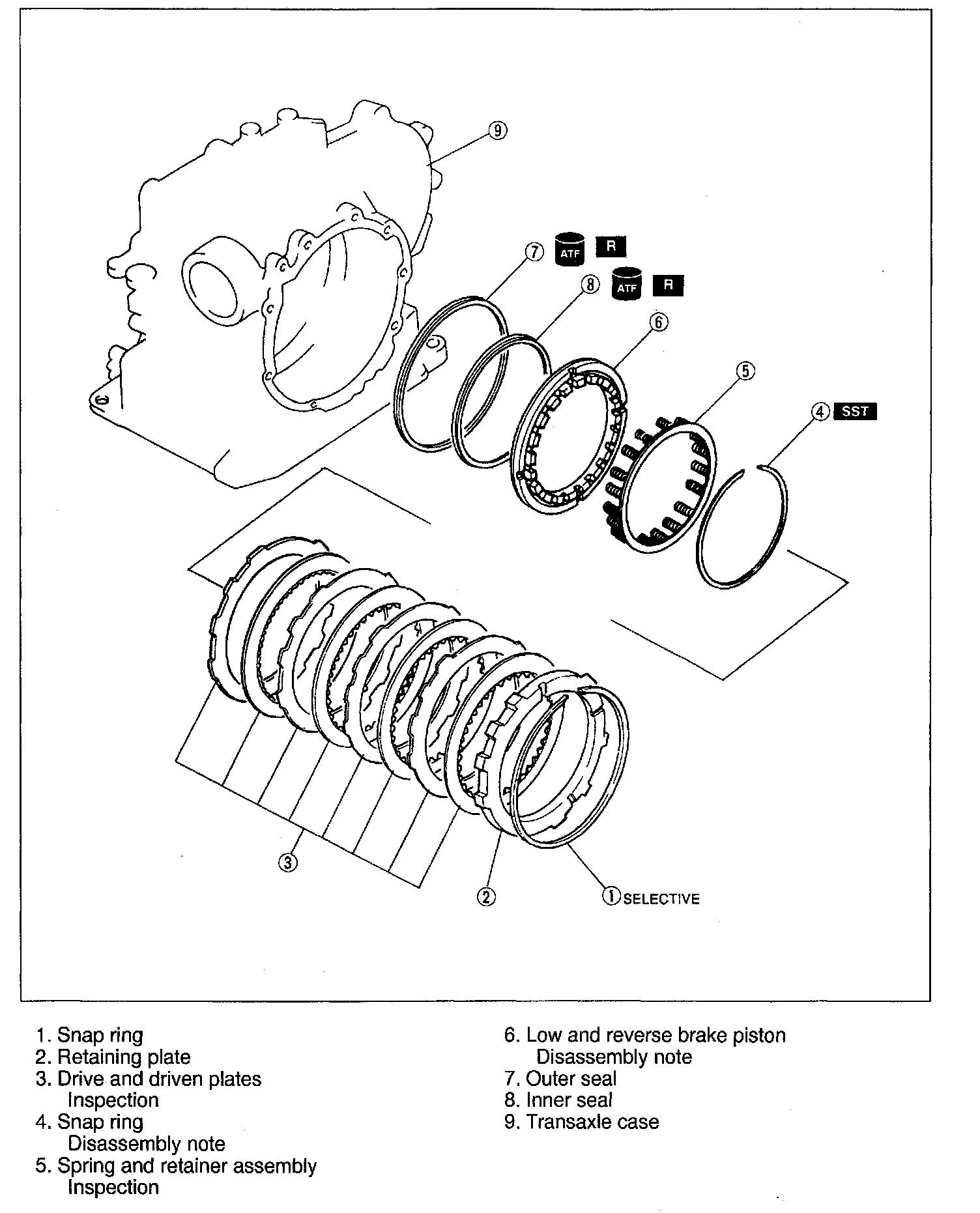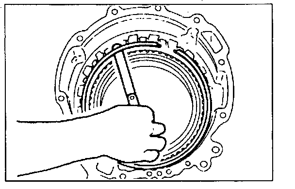 1) Measure the clearance between the snap ring and the low and reverse brake retaining plate.