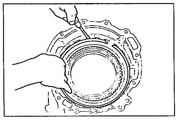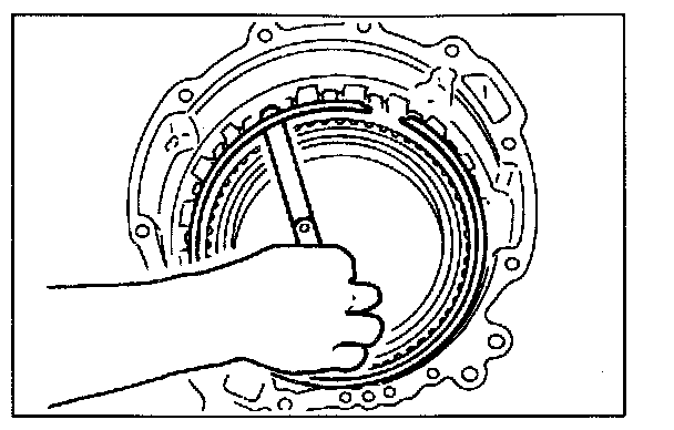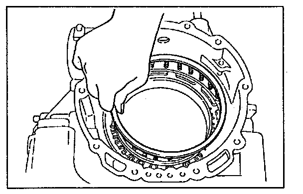 3) Install the low and reverse brake piston by pushing evenly around the circumference, being careful not to damage the outer seal.