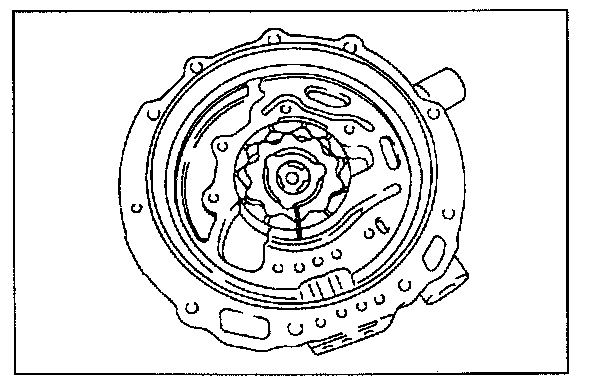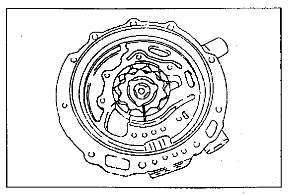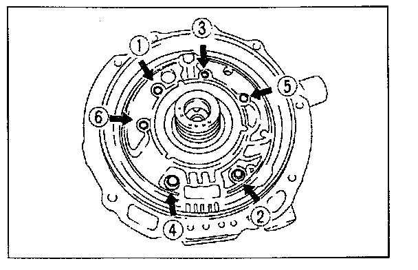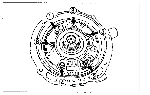 Loosen the mounting bolts evenly in the pattern shown and remove the oil pump cover from the oil pump housing.