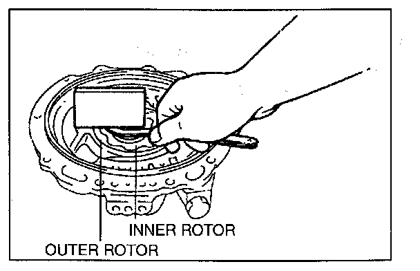 1. Measure the clearance between the end of the oil pump housing and the outer rotor and inner rotor.