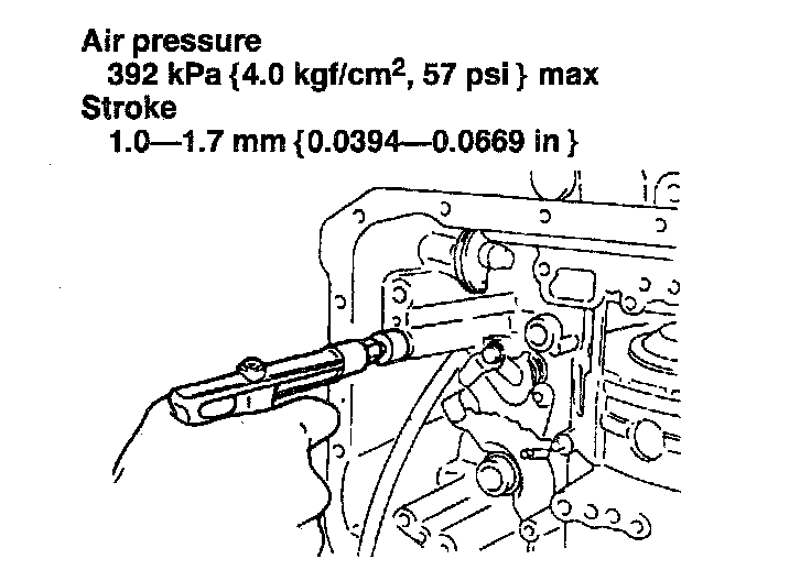 6) Apply compressed air through the fluid passage by using a rubber-tipped air nozzle as shown and measure the piston stem stroke.