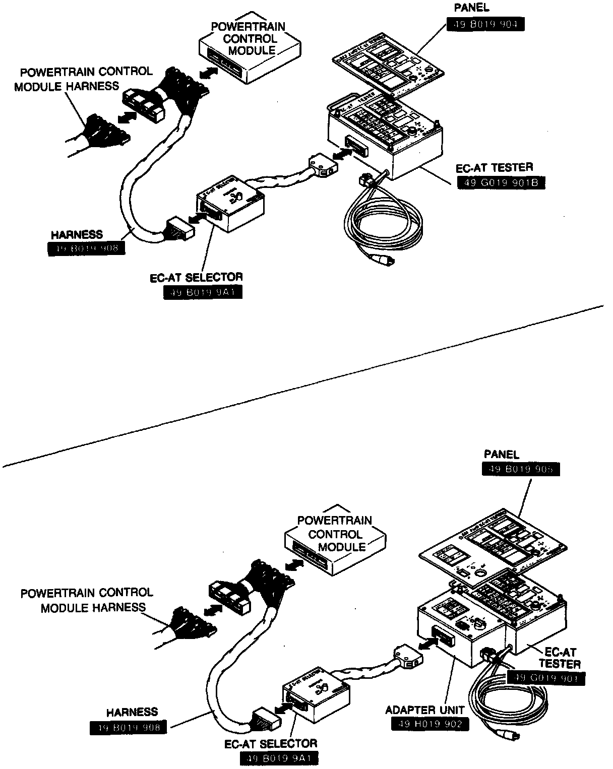 Note: Do not connect the EC-AT Tester and the system selector to the data link connector when the engine signal monitor or another EC-AT Tester is connected to the powertrain control module (transaxle). Doing so can cause incorrect test results.