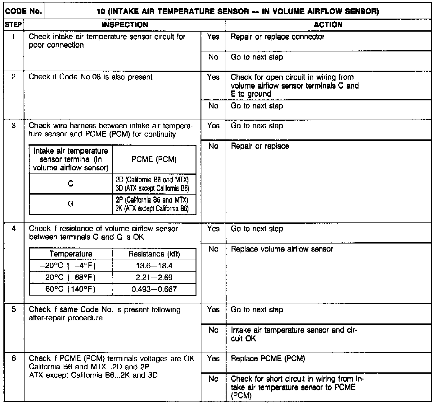Code 10 - Intake Air Temp. Sensor (Airflow Sensor):