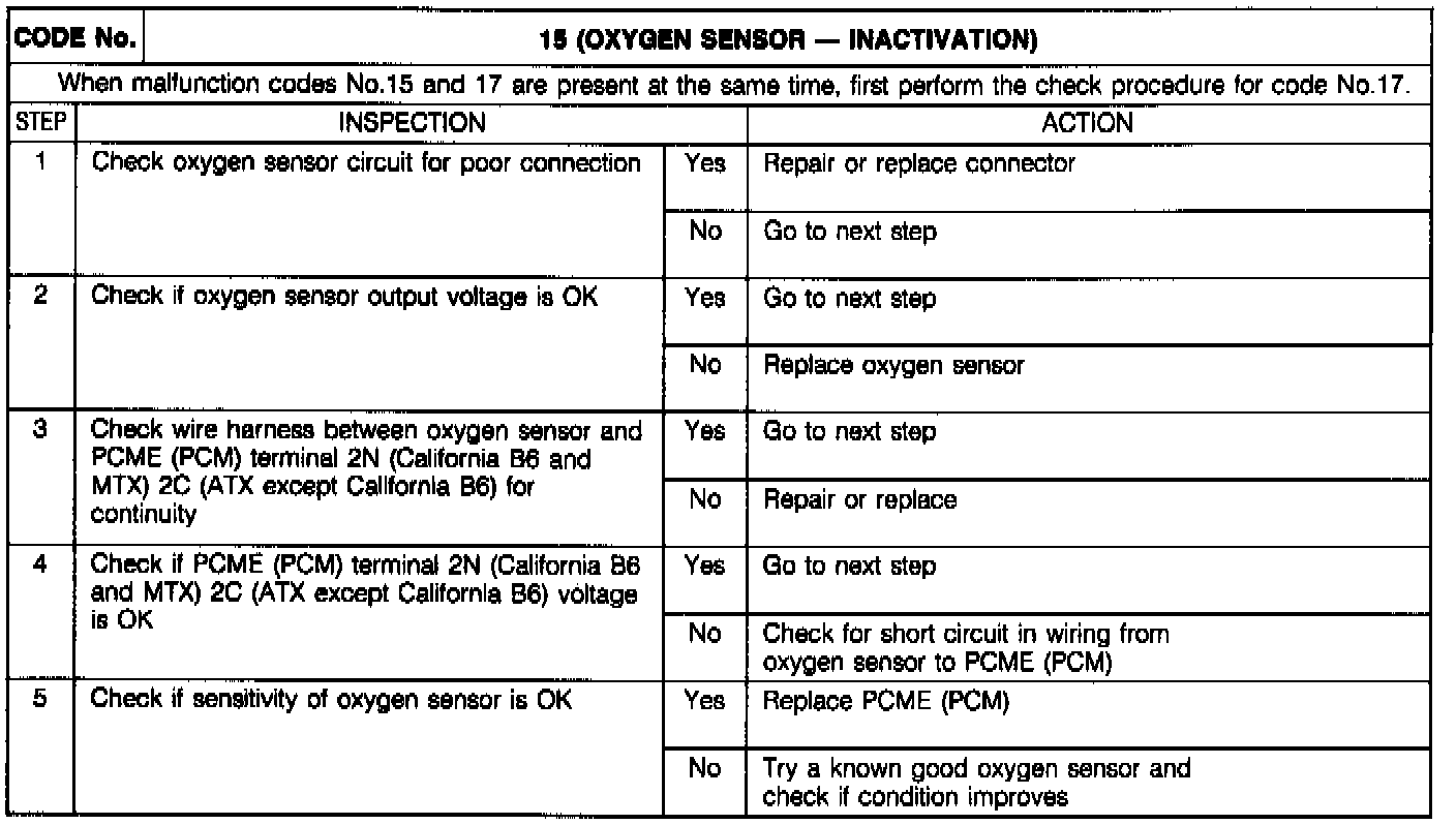Code 15 - Oxygen Sensor (Inactivation):
