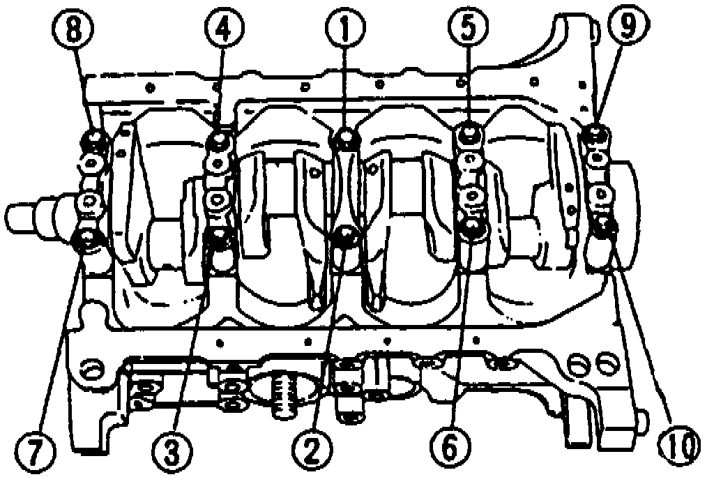 Fig. 54 Main Bearing Cap Bolt Tightening Sequence: