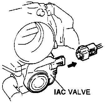 2. Check if a click sound is heard and engine spoeed increases to approximately 1200 rpm when IAC valve connector is unplugged at idle.